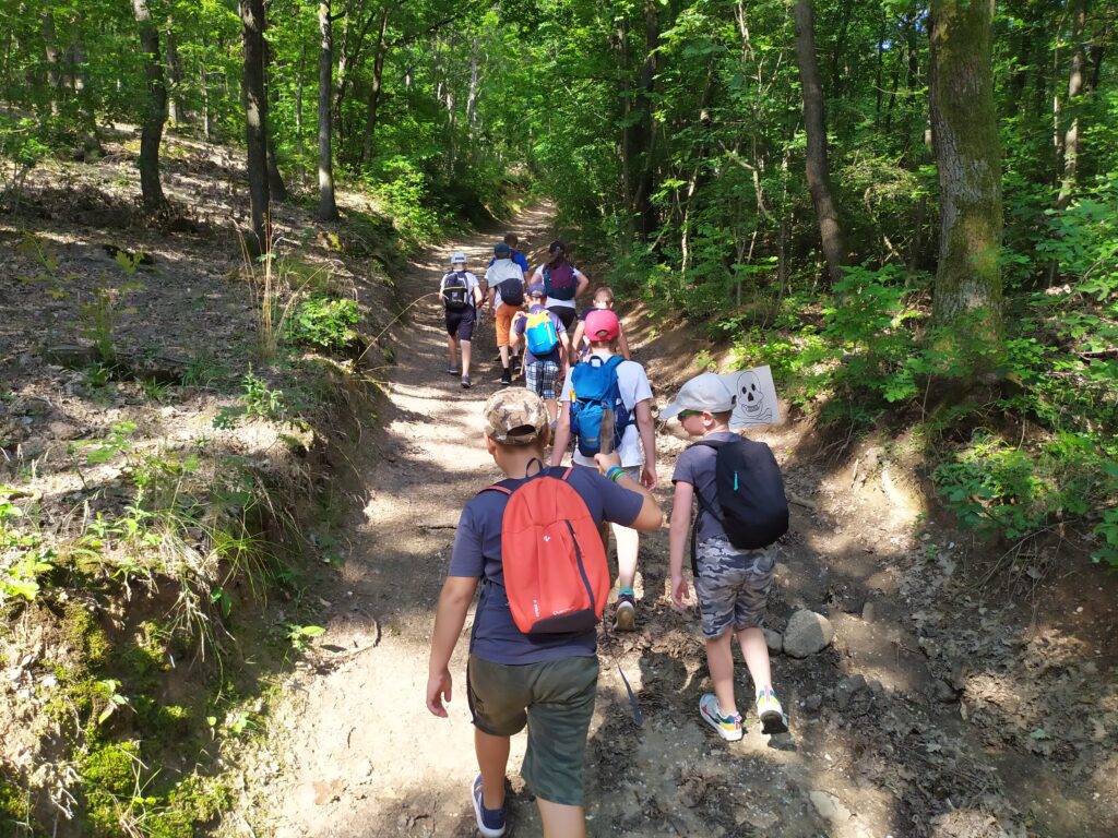 A Budai hegyek közelsége lehetővé teszi, hogy a tábor ne egyetlen helyszínre korlátozódjon. A környék gondosan kiválasztott erdei ösvényei, rétjei és természetközeli területei gyalogosan is biztonságosan elérhetők, így a gyerekek nap mint nap változatos, élményszerű felfedezésekben vehetnek részt.